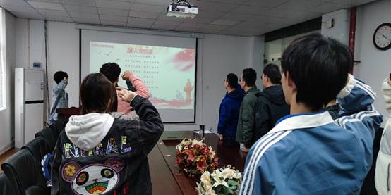 活动伊始,全体起立,齐唱国歌。与会党员高举右拳,庄严宣誓。铿锵有力的誓词表达出对共产主义的信仰和为祖国、为人民贡献青春力量的初心使命。