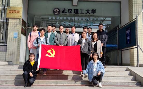 活动过程中,武汉理工大学材料学院资源循环材料研究生党支部书记刘翔带领支部党员参观武汉理工大学硅酸盐建筑材料国家重点实验室,并展示了实验室的自研产品。