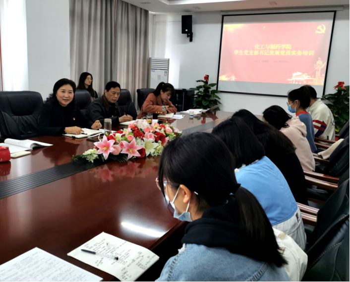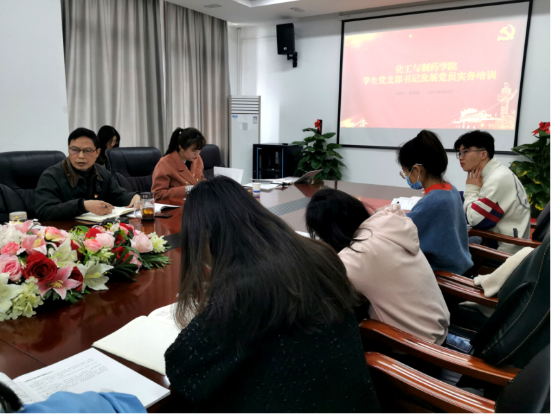 本网讯(通讯员 沈霁月)4月8日上午,银河国际在线登录在化工大楼605会议室举行学生党支部党员组织发展专题培训会。校党委组织部党校办公室主任陈恩雨应邀做主题培训讲座,学院党委书记王雪梅、党委副书记周丹,组织员黄克文及全体学生党支部委员参加了此次培训会,会议由学院党委副书记周丹主持。