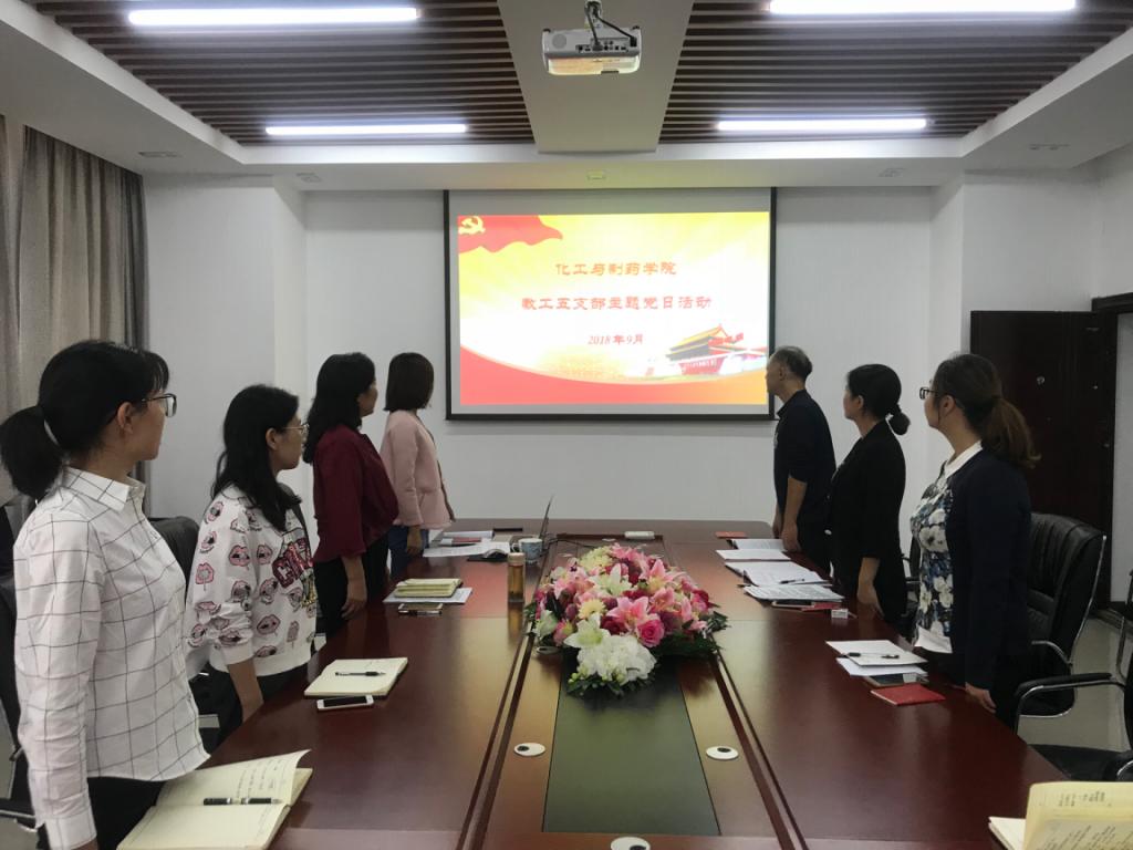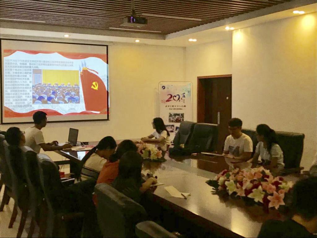 在学习环节,广大党员佩戴党徽,在党旗引领下,完成缴纳党费、奏唱国歌、重温入党誓词、诵读《党章》等规定动作后,各支部采取党员主题发言、轮流讲授微党课,集体观看视频,围绕主题学习讨论等多种形式开展党员主题党日活动,重点学习了习总书记视察湖北重要讲话精神、习总书记在全国宣传思想工作会议和全国组织工作会议上的讲话精神以及新时代全国高校本科教育工作会议精神和学校2018年暑期中层干部会议精神。