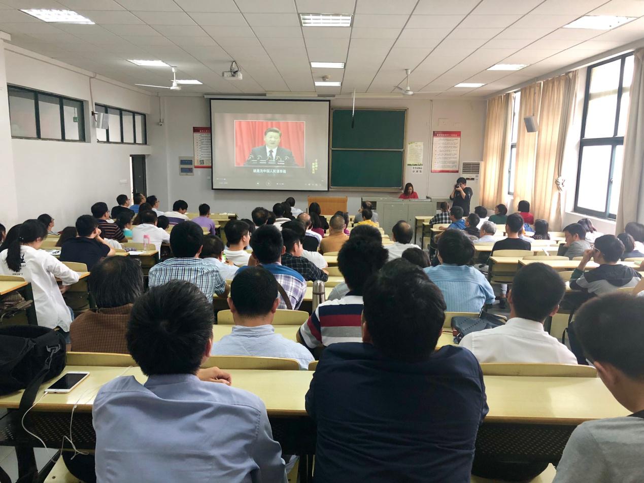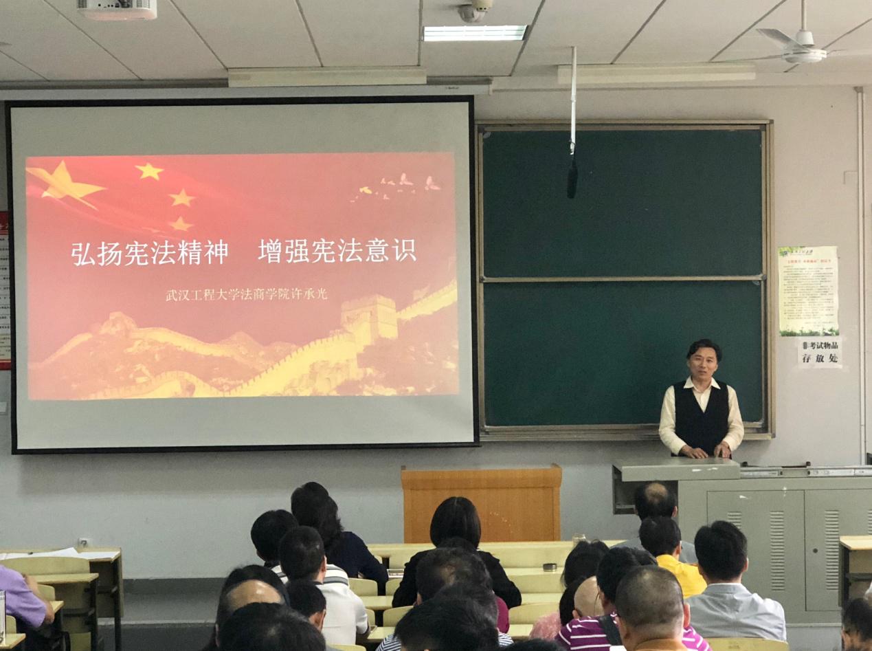 5月31日,银河国际在线登录学习《宪法》《监察法》专题辅导报告会在流芳校区4201教室举行,会议邀请法商学院许承光教授做专题辅导报告,全院教职工和各学生党支部支委会成员参加了会议。