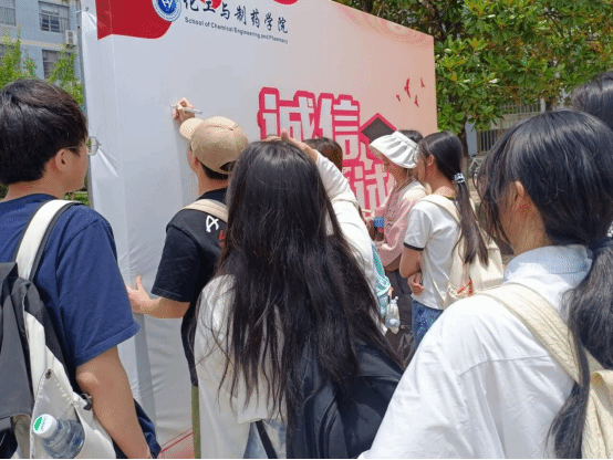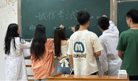 学院在教学楼前开展诚信考试签名活动,号召全体学生做遵规守纪、以德立身、明礼诚信的新时代大学生。