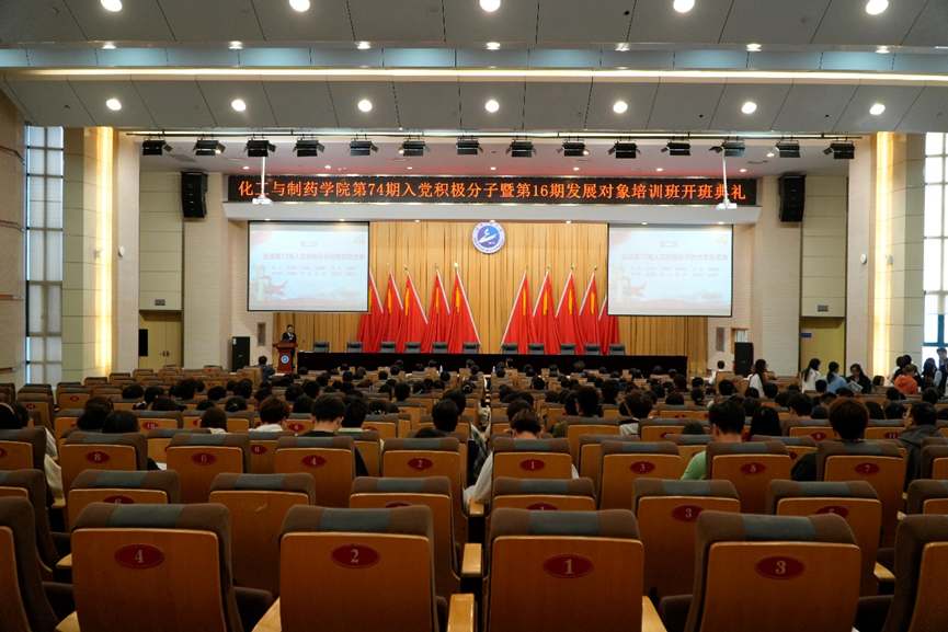 开班典礼上,学院党建中心的同学为大家深情朗诵诗歌《大写的中国》,表达了化药学子的拳拳爱国之心与殷殷报国之志。
