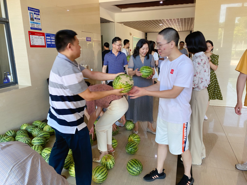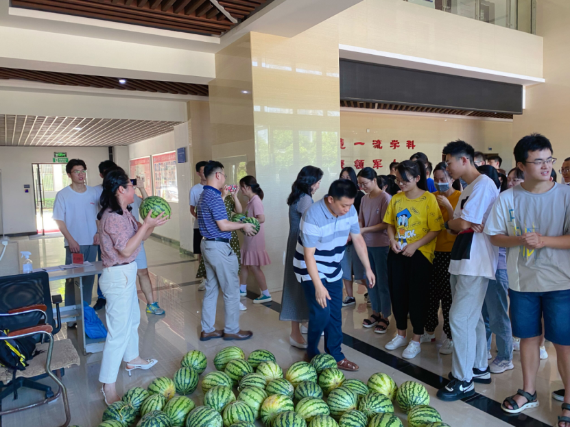 学院领导还为留校开展科研、备赛备考的学生送去清凉解暑的西瓜,并和同学们亲切交谈,了解他们在生活、学习方面的需求和困难,提醒同学们疫情防控常抓不懈,切实树牢安全意识、适当锻炼身体,合理健康饮食,做好自我教育、自我管理、自我服务,维护好学院暑期的和谐与稳定。