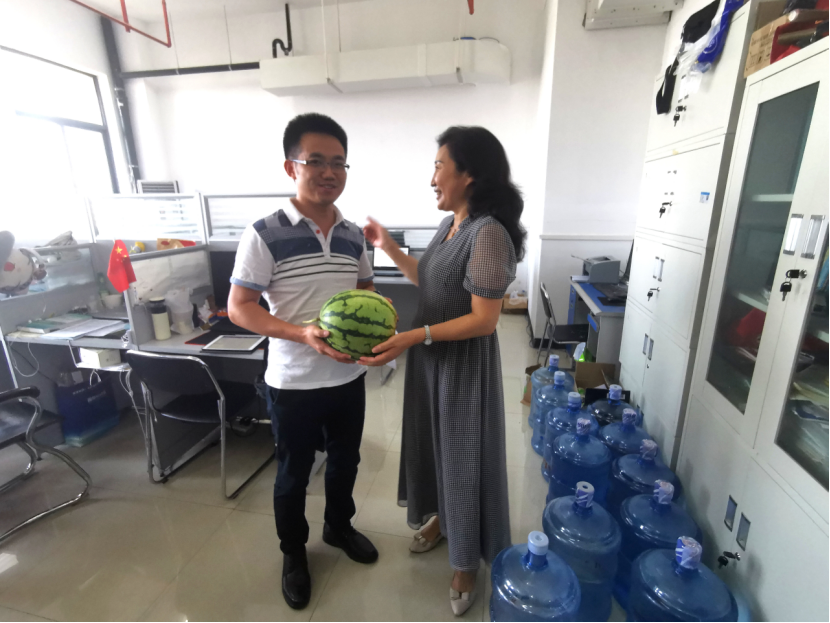 王雪梅一行先后来到实验室、教研室、办公室,看望慰问了正在辛勤忙碌的在岗教师,仔细询问了教师们科研进展、实验室建设及工作生活情况,对他们放弃假日,冒高温战酷暑坚持工作的无私奉献精神给予充分肯定,并为大家送上了慰问品,叮嘱大家注意防暑降温、注重劳逸结合,确保暑期各项工作顺利进行。