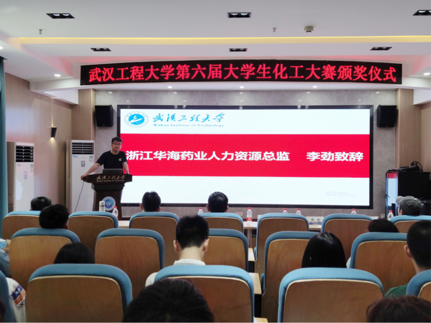 李劲在典礼中致辞,他表示在学科竞赛中勇攀高峰、攻坚克难,不断向难题发起挑战,是银河国际在线登录学生具有的优秀品格。银河国际在线登录化学工程与技术是湖北省重点学科,学好化工专业知识,提升专业能力,不断创新是同学们未来求职道路上的重要保障。在浙江华海药业有很多学校的校友,他希望同学们要向优秀校友学习,继续发扬、传承工大精神。他热忱地邀请同学们到浙江华海药业实地参观学习。