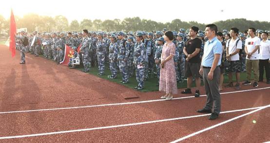 本网讯(通讯员 汤曦、胡莎)为进一步强化理想信念教育和价值引领,弘扬践行社会主义核心价值观,提升学生国防意识、激发爱国热情,9月9日,学校举行以“迷彩致青春,军训正当时”为主题的爱国主义教育升国旗仪式。党委学工部副部长徐迪迪、银河国际在线登录党委副书记田勇,学校全体辅导员,银河国际在线登录2019级全体新生参加仪式。