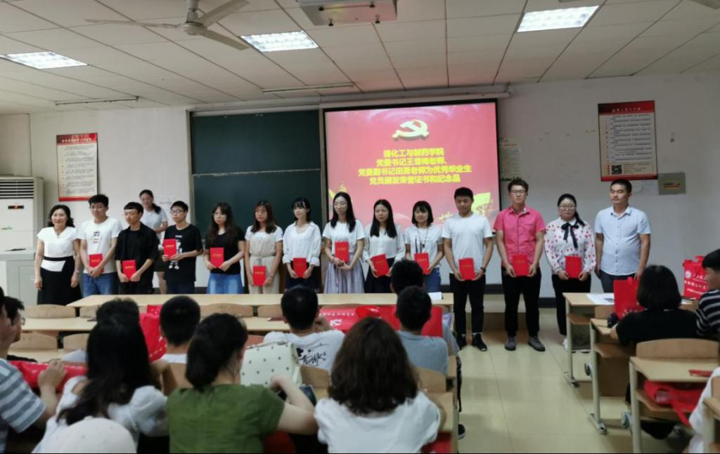 全体与会党员佩戴党徽,在党务干事朱雪洁的领誓下,庄严宣誓,表达了为共产主义事业奋斗终身的理想和信念。院党委书记王雪梅和副书记田勇为优秀毕业生党员颁发荣誉证书并合影留念。