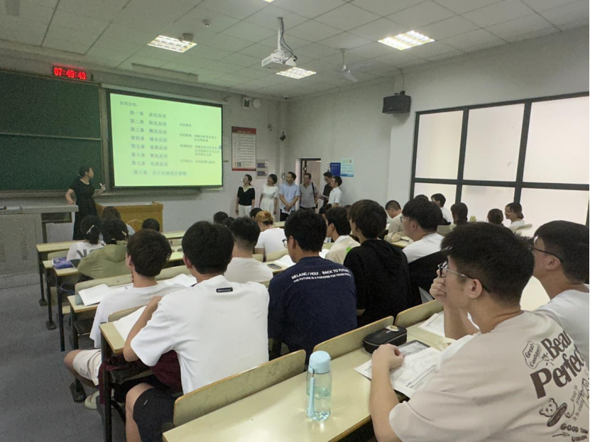 9月2日,学院党委副书记周丹,副院长余响林、古双喜,院长助理吴华东,化工系教师张林锋,制药系教师吴风收以及辅导员深入学生课堂,检查学院开学第一课情况,勉励学院师生以饱满的精神状态投入到新学期工作中去。