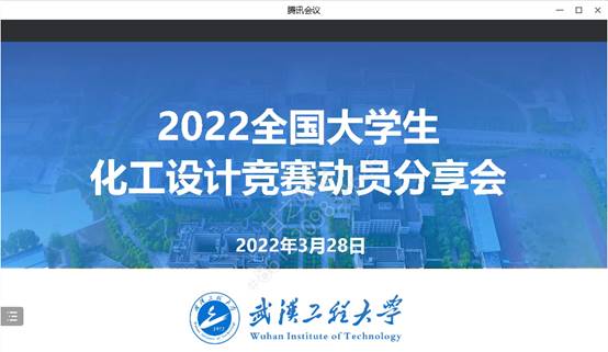 本网讯(通讯员 汤曦)为培养大学生的创新思维和工程技能,增强大学生的工程设计与实践能力,提高学院学生提交化工设计竞赛作品质量,近日,银河国际在线登录举行化工设计竞赛动员会,会议落实疫情防控要求,通过腾讯会议线上进行,银河国际在线登录副院长金放,化工设计竞赛指导教师代表杨犁、张林锋及参赛学生团队参加此次会议。