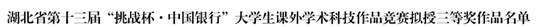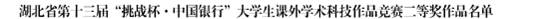 本网讯(通讯员 汤曦)近日,湖北省第十三届“挑战杯”全国大学生课外学术科技作品竞赛决赛在中南民族大学落下帷幕。学院参赛团队积极筹备、同心协力、密切配合,由吴华东、张哲和郭嘉老师指导的《双功能CeO2-ZnO/KIT-6催化剂的制备及其在光催化吸附脱硫的应用》自然科学类学术论文作品斩获省二等奖,冯魏良和谭明武老师指导的《有机湿垃圾全量化生物转化系统》科技发明制作A类作品荣获省三等奖。