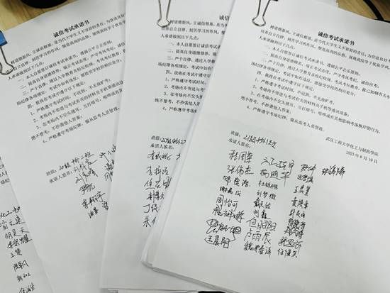 学院在教学楼开展诚信签名活动,号召全体学生党员和学生骨干以身作则,率先垂范,带头发扬诚实守信的优良品德,以实际行动维护考场秩序;并以班级为单位动员全体学生签署《诚信考试承诺书》,以考风、正学风。