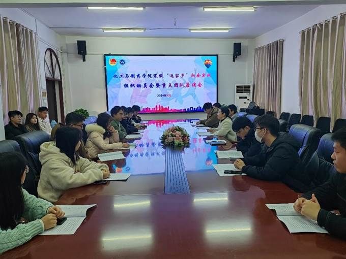 寒假前期,学院组织召开2024年寒假“返家乡”社会实践组织动员会暨重点团队座谈会,对寒假社会实践作出总体布局安排,动员号召广大化药学子积极参加到基层实践当中。会上,学院重点团队负责人从个人经历、实践规划、重难点等方面介绍了寒假社会实践实施方案,鼓励同学们积极参与,助力自身成长。