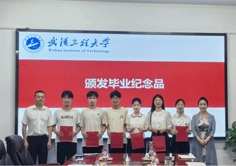 严敏部长、邓欢书记和杨海波书记、易群院长代表学校、学院为毕业生代表赠送纪念品,祝愿毕业生前程锦绣、未来可期。