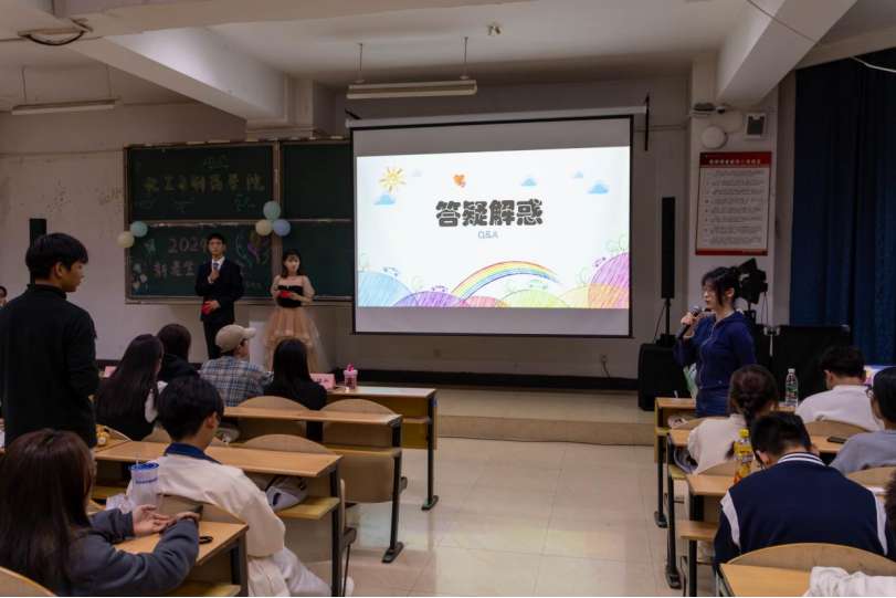问答交流环节:同学们纷纷举手提出自己关心的专业分流、竞赛、考研、就业等方面的问题,辅导员和学长学姐们分享了自身的经验和体会,大家交换想法,新生们对于自己的大学生活也有了更清晰的认识和更明确的规划。