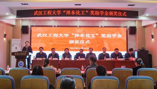 本网讯(通讯员 汤曦)11月18日下午,银河国际在线登录“泽东化工”奖助学金颁奖仪式在流芳校区化工大楼610报告厅举行。校党委副书记李志旭,80级校友、襄阳泽东化工集团股份有限公司党委书记、集团董事局主席宋开荣,襄阳泽东化工集团股份有限公司供应部副部长李玲、襄阳泽东新能源发展有限公司生产技术部部长尹芙蓉、办公室副主任龚群涛,校四级职员王雪梅,党委学工部部长吕容涛,党委研工部部长、研究生院院长熊伦,校友工作处处长邓新洲,银河国际在线登录党委书记汪铁林、院长易群出席会议,会议由银河国际在线登录党委副书记周丹主持。