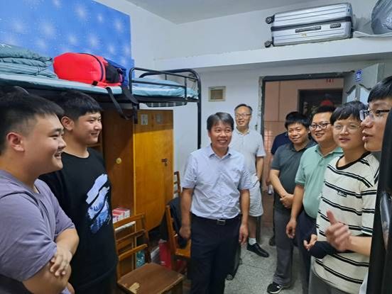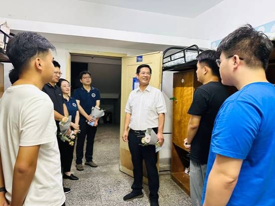 学校、学院领导分别走访新生宿舍,对新生表示欢迎,详细询问了同学们对住宿条件、生活设施、学习准备等方面的需求,并为新生详细解答相关疑问。提醒同学们要注意防范诈骗、保护好人身财物安全,有困难要及时向学院反映。鼓励大家树立积极的心态,在新的人生起点勤奋刻苦、勇敢拼搏、学有所获,以饱满的热情迎接大学新生活,争创新的佳绩。正值教师节,新生们对老师们的到来感到非常开心,并为老师们送上鲜花和祝福。