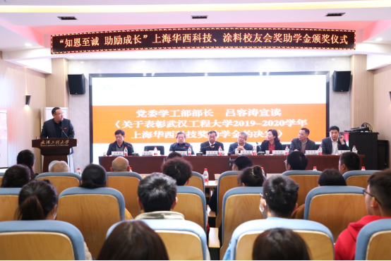 本网讯(通讯员 汤曦)3月20日下午,银河国际在线登录上海华西科技、涂料校友会奖助学金颁发仪式在流芳校区化工大楼610报告厅举行。校党委副书记李志旭,校友代表彭昌军、纪志愿、何明益、尚勇全、王崇武、胡晓光、陶醉,党委学生工作部、校友工作处、银河国际在线登录、机电工程学院相关负责人、教师代表、全体获奖学生及学生代表110余人参加仪式,会议由银河国际在线登录党委副书记周丹主持。