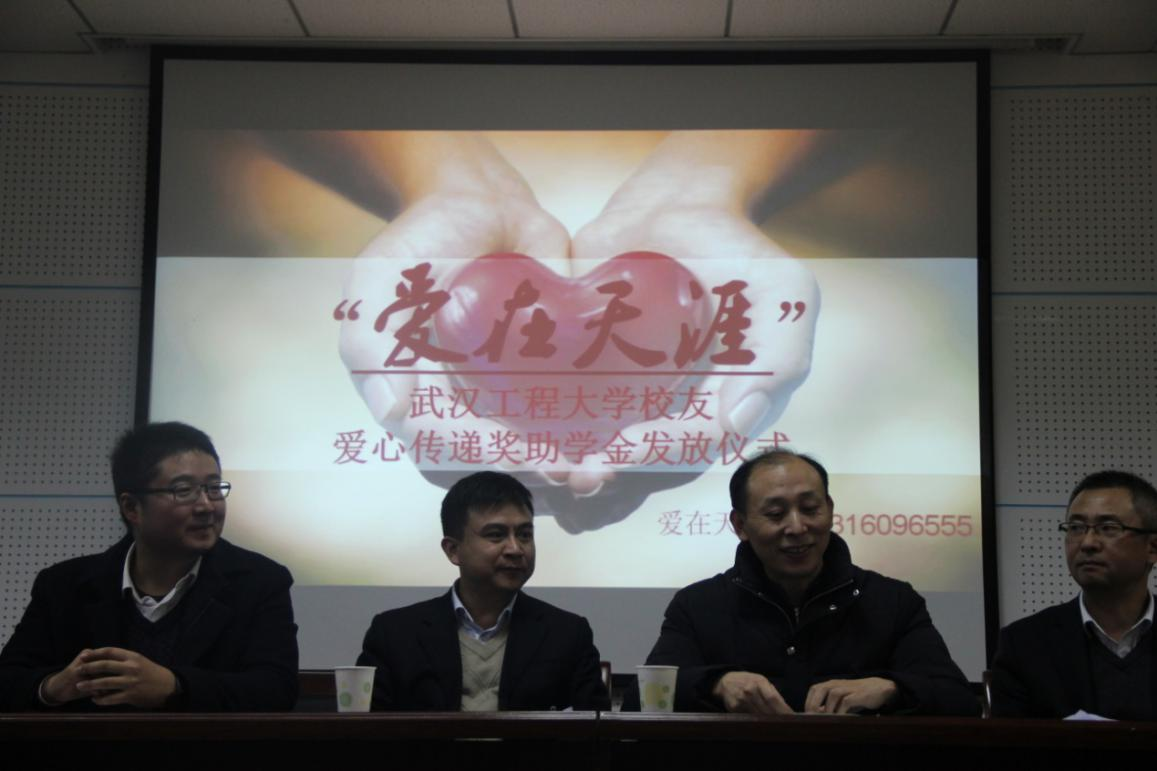 1126日,银河国际在线登录2016年“爱在天涯”校友爱心传递助学金发放仪式在流芳校区一号实验楼101会议室举行,总务处党委书记陆新,学生处副处长王涛,银河国际在线登录院长喻发全,院党委副书记田勇,校友周剑凌,彭巍,刘继君,晏文茂,赵晓娟,吴艳宏,彭学凡,爱心人士巨修练老师出席评审发放仪式。仪式由党委副书记田勇主持。