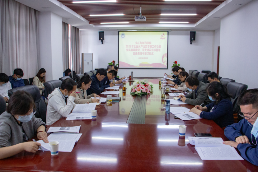 会上,学院党委书记汪铁林、院长易群与三级单位代表制药制药党支部书记葛燕丽、系主任古双喜签订三级单位全面从严治党责任书、党风廉政建设责任书。