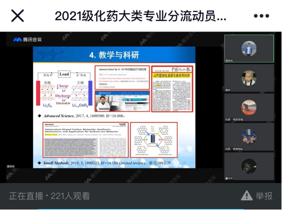 本网讯(通讯员 梅军)为有序开展学院化工与制药类专业分流工作,使学生明确选择专业方向,4月9日晚,银河国际在线登录通过腾讯视频会议和线上直播召开2021级专业分流动员宣讲会。学院党委书记汪铁林,院长易群,副院长金放、龙思会、闫志国,院长助理刘根炎,各系(中心)主任、副主任,2021级辅导员、班主任、全体化工与制药大类300名同学参加了此次线上会议,会议由学院党委副书记周丹主持。