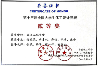 为多方面培养大学生的创新思维和工程技能,培养团队协作精神,增强大学生工程设计与实践能力,实践“卓越工程师教育培养计划”,我院2016级3支团队在全国总决赛中经过激烈的答辩角逐,凭借扎实的专业基础和良好的工程教育素养,分别获得了全国大学生制药工程设计竞赛一等奖、全国大学生化工设计竞赛国家二等奖、三等奖。
