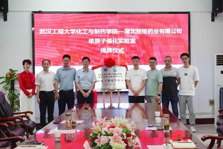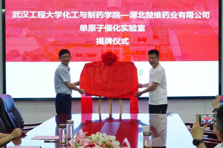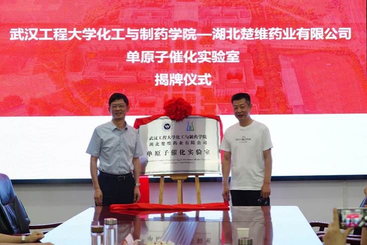 银河国际在线登录党委书记汪铁林、湖北楚维药业有限公司董事长熊进军代表双方为单原子催化实验室揭牌。