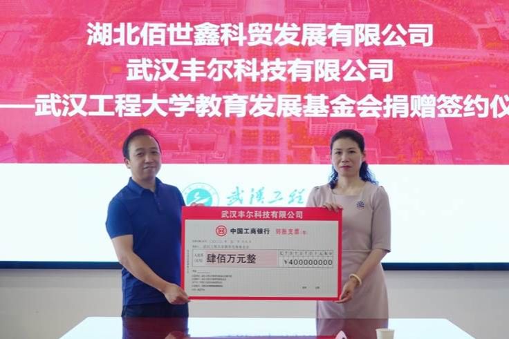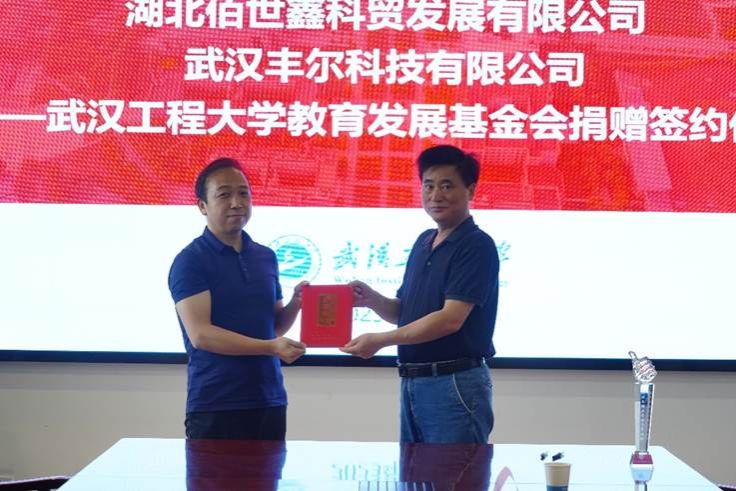 本网讯(通讯员 李哲伦 常琬笛 季凯)5月18日上午,武汉丰尔科技有限公司、湖北佰世鑫科贸发展有限公司向学校教育发展基金会捐赠签约仪式在银河国际在线登录会议室举行。武汉丰尔科技有限公司总经理徐朝辉、湖北佰世鑫科贸发展有限公司总经理陈璐来校签约,学校正校级干部叶芃出席仪式。银河国际在线登录、教育发展基金会秘书处负责人及相关人员参加仪式。仪式由银河国际在线登录院长易群主持。