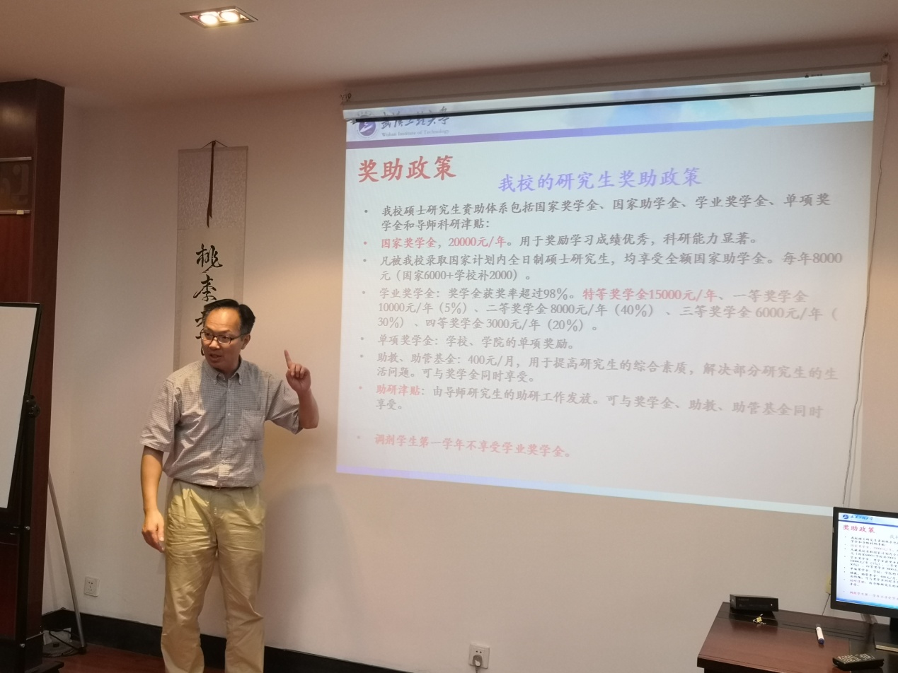 9月17日下午,银河国际在线登录2019年度研究生招生宣讲会在湖北理工学院化学与化工学院会议室举行。本次宣讲团队由银河国际在线登录银河国际在线登录龙思会副院长、田琦峰副院长以及曹爽博士组成,团队一行受到了湖北理工学院卢小菊院长的热情欢迎。30余名湖北理工学院的意向考生报名参加。宣讲会分为嘉宾演讲、招生政策解读和互动交流三个部分组成。会上就银河国际在线登录基本校情、研究生教育概况(学位点、师资、培养模式、奖助体系、各类研究生招生政策等)和相关学科研究生教育的优势与特色进行了详细介绍,还进行了导师面对面交流活动。宣讲会现场学生踊跃提问,气氛热烈。