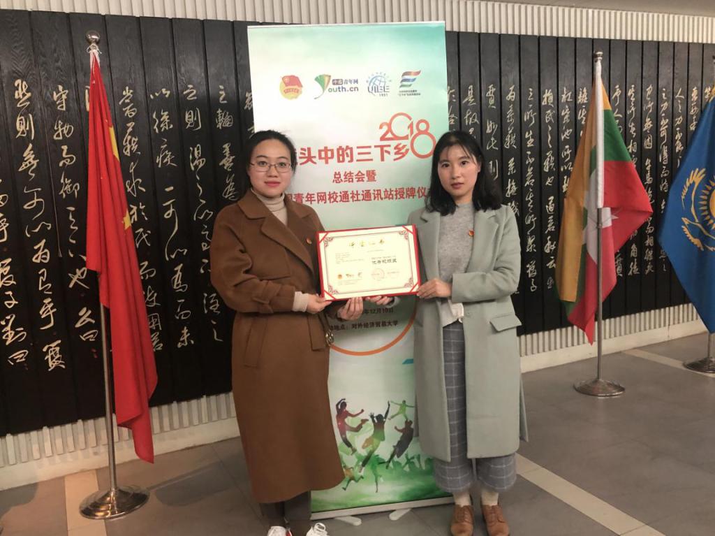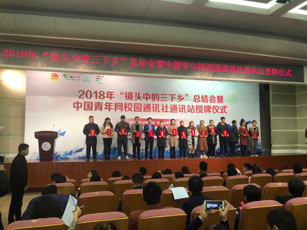 本讯网(通讯员李茜)12月19日下午,2018年“镜头中的三下乡”总结会暨中国青年网校园通讯社通讯站授牌仪式在北京对外经济贸易大学隆重举行。团中央青年发展部副部长刘钢,团中央青年发展部实践教育处处长柏贞尧,团中央网络影视中心党委委员、中国青年网副总裁、总经理金锐,对外经济贸易大学党委副书记文君等领导嘉宾,以及全国300余所高校的600余名师生代表参加本次活动。银河国际在线登录“红船精神”实践团荣获2018年“镜头中的三下乡”优秀视频奖。