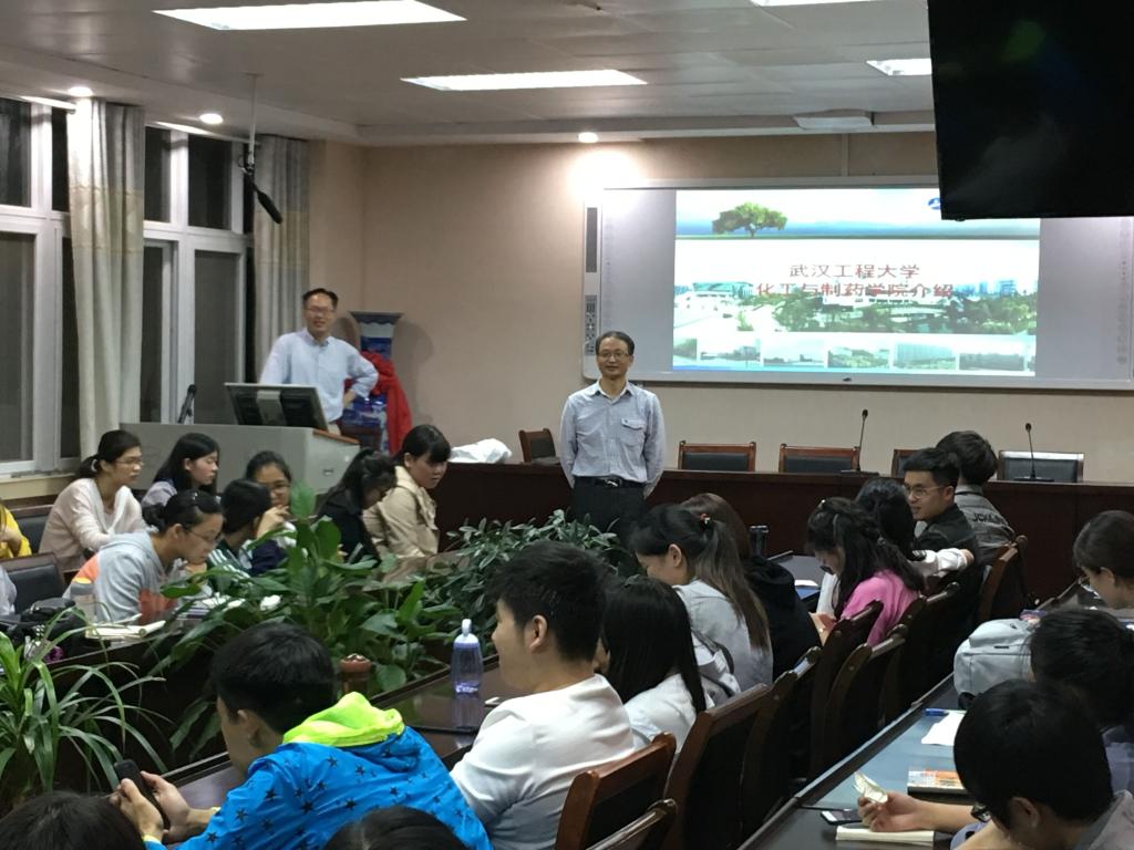 当晚7点半,招生宣传活动准时在信阳师范学院化学化工学院四楼会议室召开。宣讲会由化学化工学院吴志伟书记主持,我院龙思会院长给学生们做了招生宣传报告。