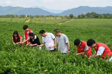 指导老师带领志愿者们踏入茶园,学习茶叶的理论知识,深入了解绿茶的生长环境、制作方法、品质评价等方面的内容,并在亲身实践中掌握采茶技巧。
