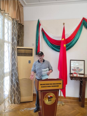 让•路易•罗宾逊先生曾为马达加斯加国家卫生部长,在医药领域有深厚造诣。在受聘期间,周霁老师向罗宾逊先生等与会大使介绍了由他和冯菊红、刘根炎和郭飞老师等共同撰写的实验安全英文专著《The Safety Status and Research of Drug Synthesis Experiments in Pharmaceutical Engineering》(《制药工程中的药物合成实验安全现状与研究》),罗宾逊先生对该著作给予了高度评价。在随后的驻华大使交流中,该著作也得到了毛里求斯驻华大使王纯万、几内亚驻华大使科伊塔、波黑驻华大使贝尔扬和北马其顿驻华使馆政治参赞博瑞杨的充分肯定。