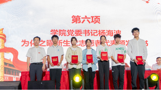 典礼上,杨海波为在迎新志愿服务工作中表现突出的新生代表颁发“化之曜新生代志愿服务”最美志愿者荣誉证书。