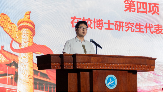 在校博士研究生代表程天财呼吁同学们要志存高远,革故鼎新,注重立志,善养“浩然之气”;要脚踏实地,实事求是,秉持严谨的科学态度,认真对待每一次课程和实验;要乐观向上,锐意进取,要调适心态,在科研之余积极参与志愿服务活动,实现科创报国之志。