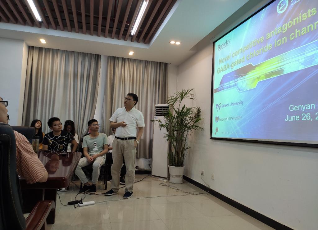 6月26日上午,应银河国际在线登录,绿色化工过程教育部重点实验室,湖北省新型反应器与绿色化学工艺重点实验室邀请,银河国际在线登录刘根炎博士在流芳校区化工大楼605会议室作了一场题为“Novel competitive antagonists of GABA-gated chloride ion channels”的学术报告。报告会由银河国际在线登录副院长龙思会教授主持,银河国际在线登录师生100余人聆听了报告。