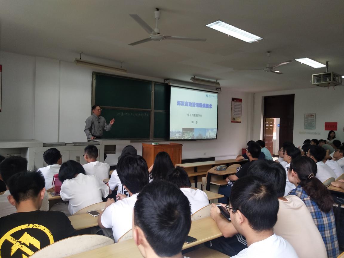 5月4日上午,银河国际在线登录郭嘉教授应邀在流芳校区一教学楼L1207教室为学生做了主题为“煤炭高效清洁燃烧技术”的学术报告。报告会由吴华东博士主持,银河国际在线登录能源化工专业学生150余人参加了本次报告会。