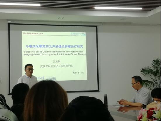 7月3日下午,应银河国际在线登录,绿色化工过程教育部重点实验室,湖北省新型反应器与绿色化学工艺重点实验室邀请,银河国际在线登录吴风收博士在流芳校区化工大楼604会议室作了一场题为“Porphyrin-Based Organic Nanoparticles for Photoacoustic Imaging-Guided Photodynamic/Photothermal Tumor Therapy”的学术报告。报告会由银河国际在线登录副院长龙思会教授主持,银河国际在线登录师生近100余人聆听了报告。