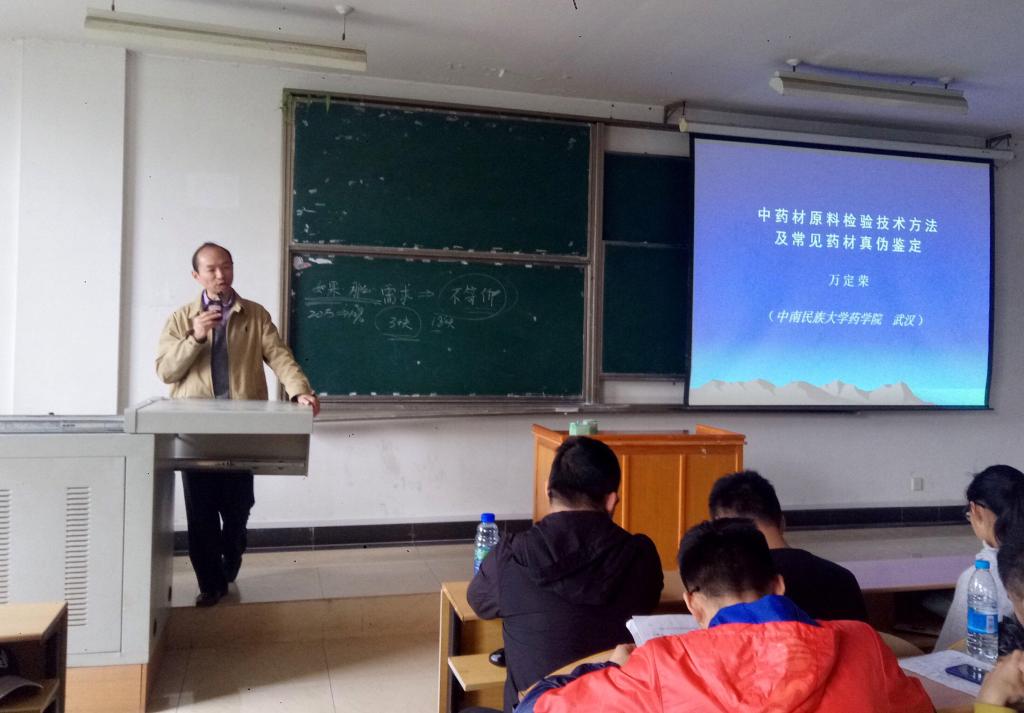 4月27日上午,应银河国际在线登录银河国际在线登录的邀请,中南民族大学药学院万定荣教授在流芳校区一教楼L1207教室做了一场题为“中药材原料检验技术方法及常见药材真伪鉴定”的学术报告。